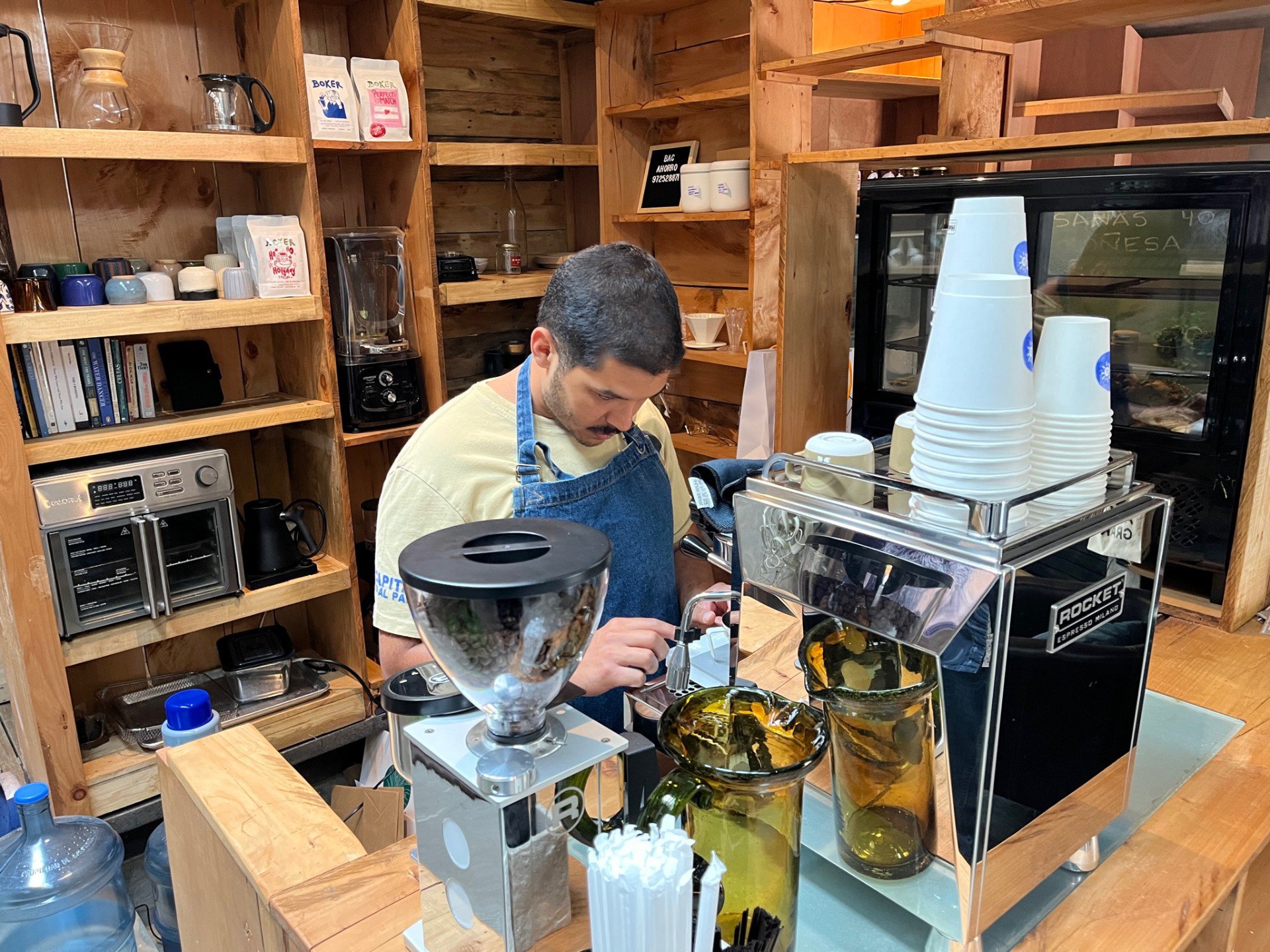 Estamos en un espacio donde existen otras marcas de emprendedores. El lugar sirve como una plataforma para emprendedores y brindarles el servicio de venta de sus productos pagando un derecho de piso. Juntamente si intenta crear una sinergia entre las marcas y el café para poder ofrecer de alguna manera los productos dentro del menú.