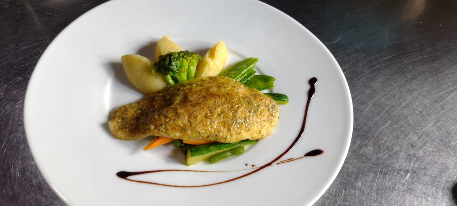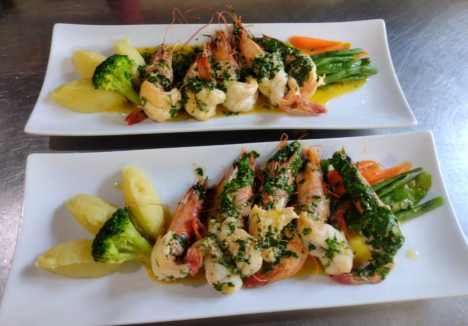 Filete de pescado, costra de chiltepe y también lo presentamos con crema de chiltepe. Pechuga de pato con salsa tamarindo o salsa de moras. Lomito salsa de hongos gratin de yuca vegetales. Camembert gratinado y chutney de ciruela. Camarón jumbo al chiltepe o al ajo y vino blanco.
