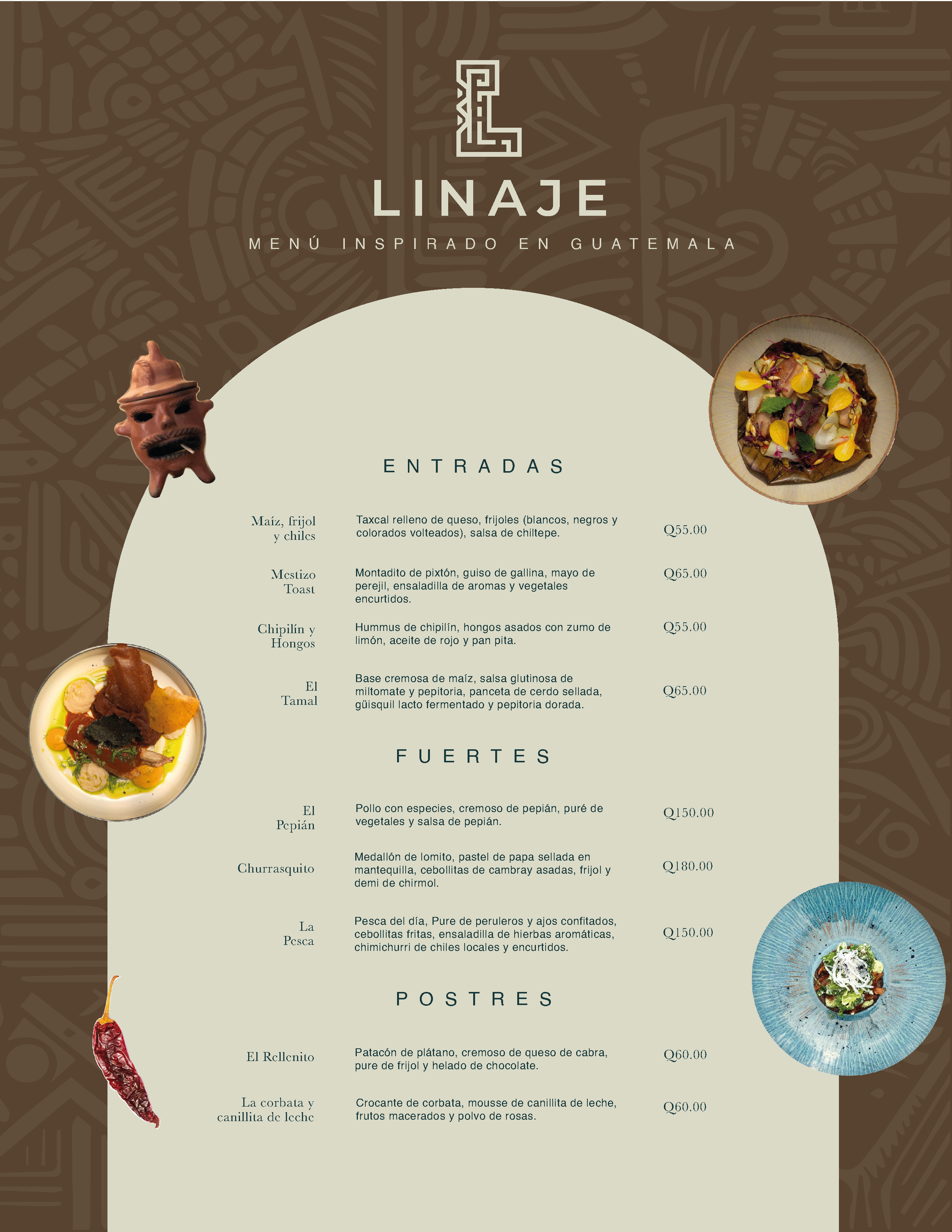 Linaje nace como un homenaje a Guatemala y a todo lo que nos define: nuestra tierra, nuestra herencia, y los sabores que han acompañado generaciones. La inspiración surge del deseo de contar historias a través de la gastronomía, creando una experiencia donde cada plato sea un recuerdo, un origen y una emoción.