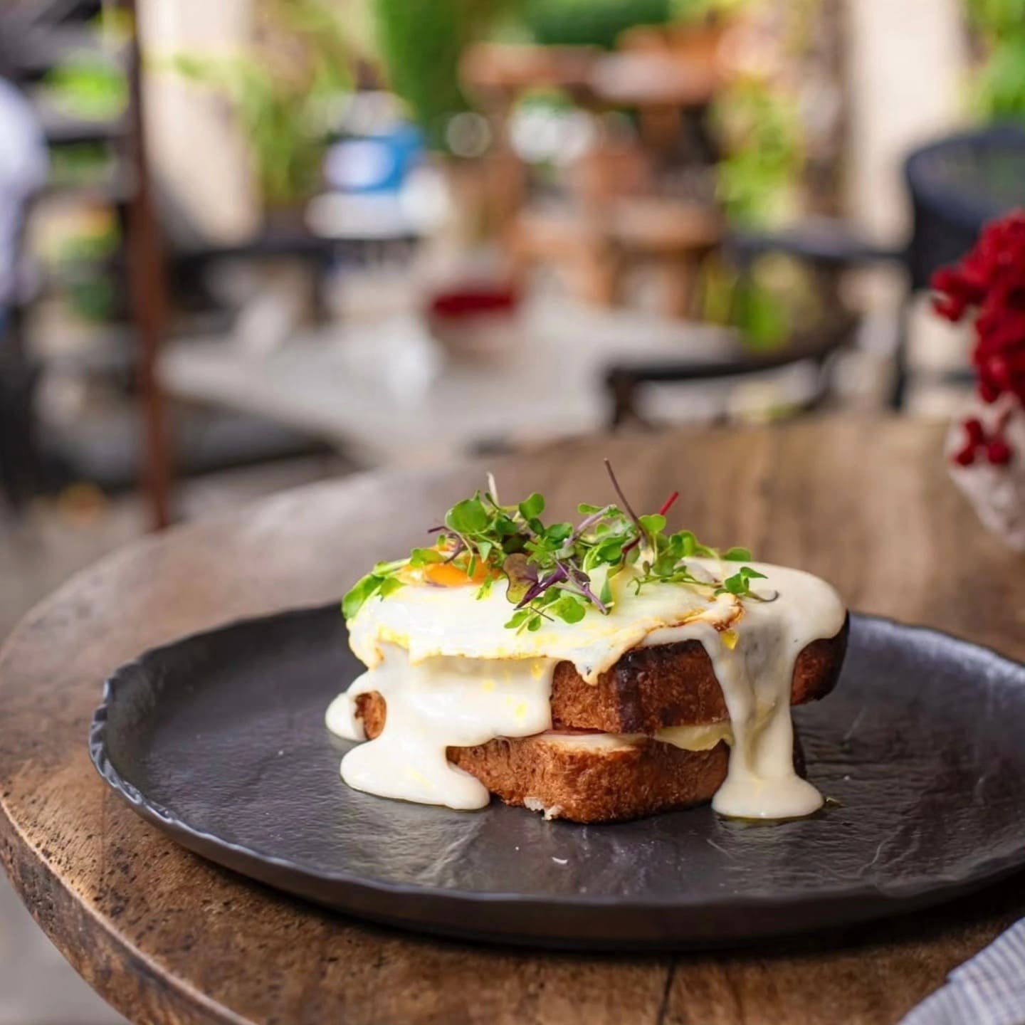 Encuentra un ambiente acogedor, fresco y con música en vivo todos los días. Rodeado de elementos como fuego, hierbas aromáticas, flores, plantas, humo, velas e iluminación especial, disfrutarás de una experiencia única mientras saboreas platos elaborados con ingredientes locales de temporada.