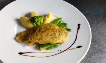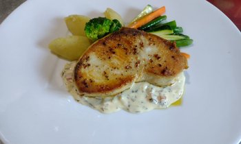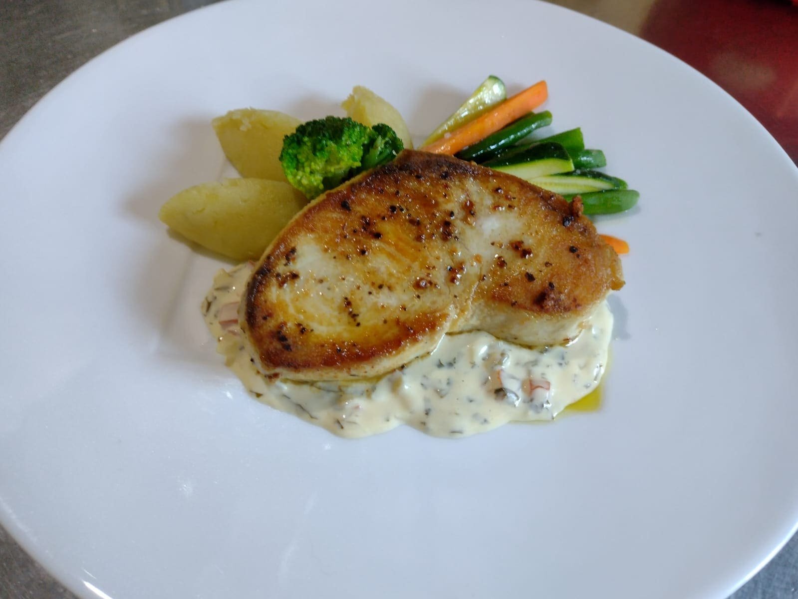 Filete de pescado, costra de chiltepe y también lo presentamos con crema de chiltepe. Pechuga de pato con salsa tamarindo o salsa de moras. Lomito salsa de hongos gratin de yuca vegetales. Camembert gratinado y chutney de ciruela. Camarón jumbo al chiltepe o al ajo y vino blanco.