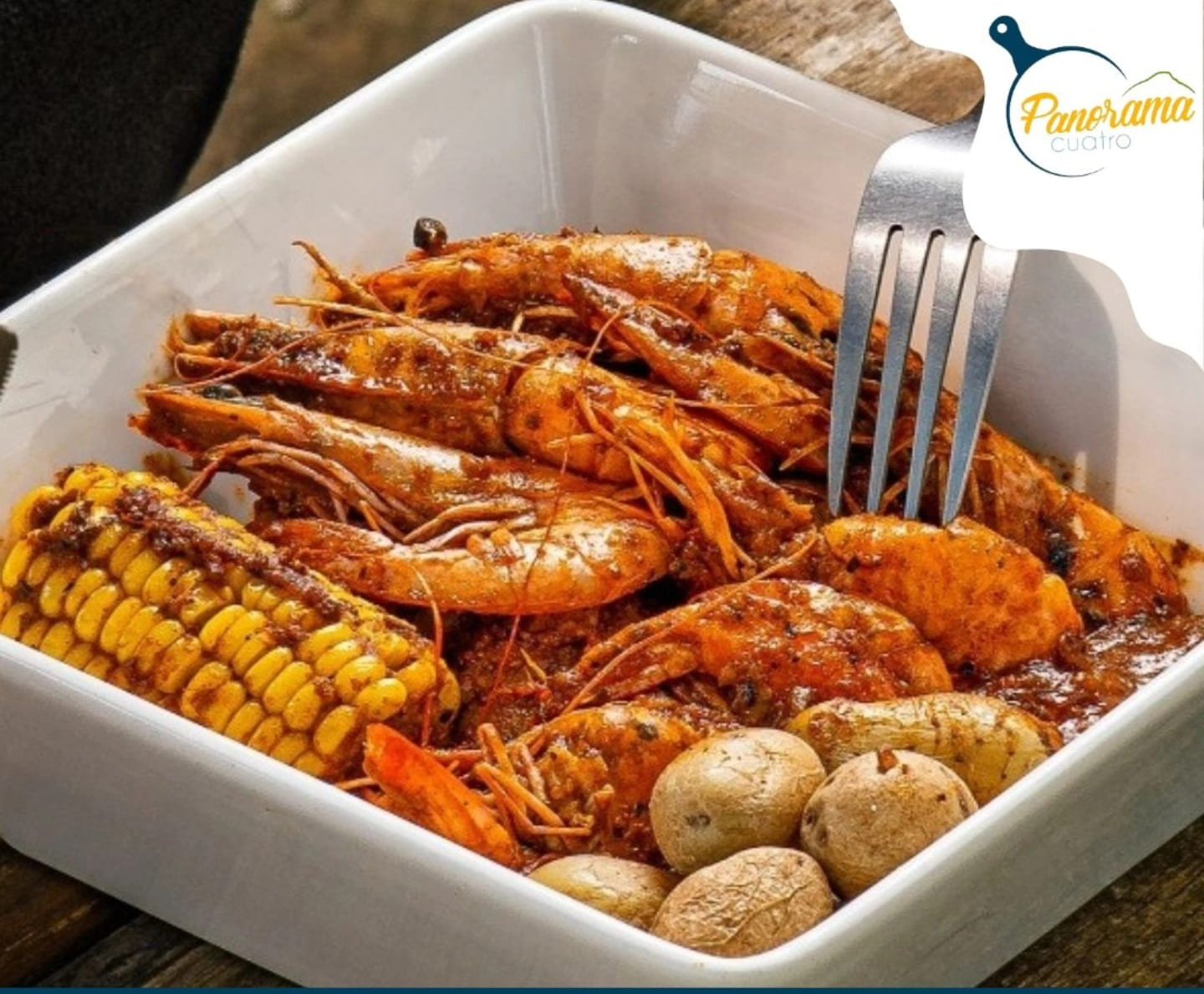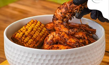 Camarones Cajún, pizzas y hamburguesas.